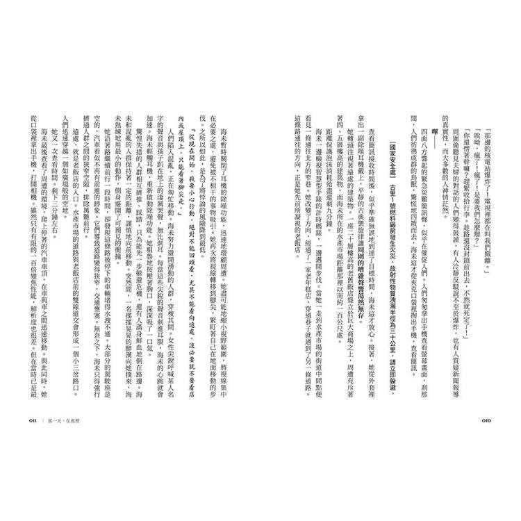 四面八方響起的緊急災難簡訊聲,似乎在催促人們。人們匆匆拿出手機查看螢幕畫面,剎那間,人們彷彿成群的鳥獸,驚慌地四散而去,海未這才從夾克口袋裡掏出手機,查看簡訊。