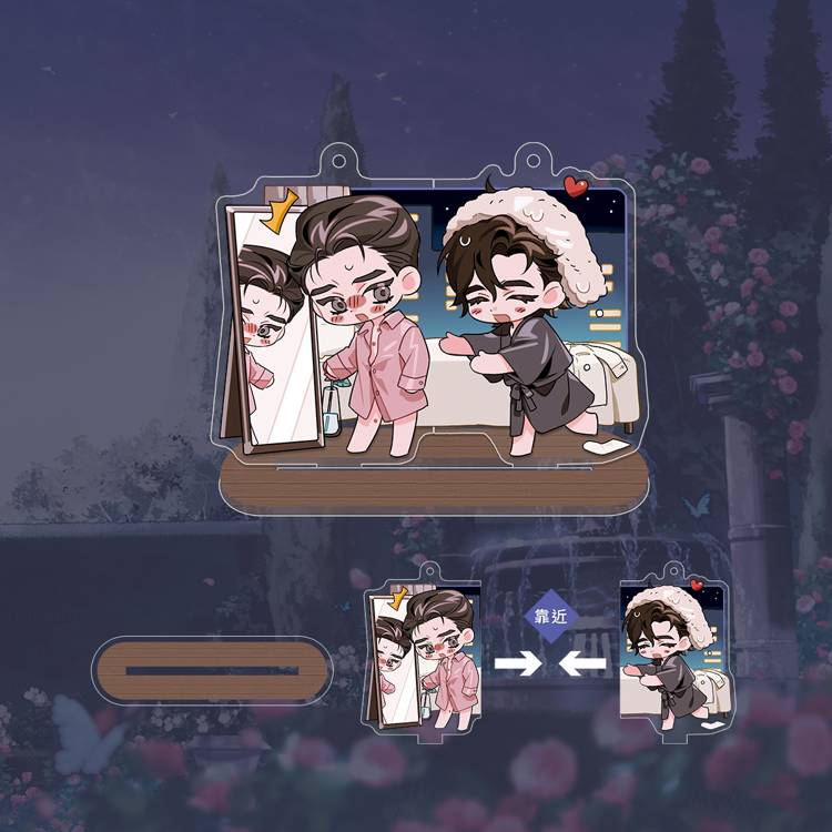 雖然兩人的外表看起來身材差不多,但卡萊爾仍很好奇是否有什麼細微的差異,於是趁艾許洗澡時偷偷穿了他的襯衫,卻被洗完澡的艾許撞見,覺得偷穿自己襯衫的卡萊爾真是性感又可愛,讓人忍不住想緊緊抱住他……磁吸吊飾完美呈現這個讓人心動又會心一笑的一幕,吊飾及立牌兩用的設計,要隨身攜帶或放在桌上展示皆可