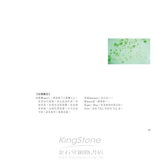 《夭壽靜的春天--臺詩十九首》這本繪本詩冊,故意只蒐錄十九首詩作,而不是傳統「大碗滿墘」的八、九十首作品,其設計的動機,除了師法東漢《古詩十九首》的格式之外,另一個用心,則是想透過簡單、少量的台語漢字文本,再輔以圖片插畫、有聲朗讀的多元動態呈現,來回應現階段「輕閱讀」的文化趨勢,這對於視台語文學為畏途的一般讀者,也許是個更有趣、更easy的選項。