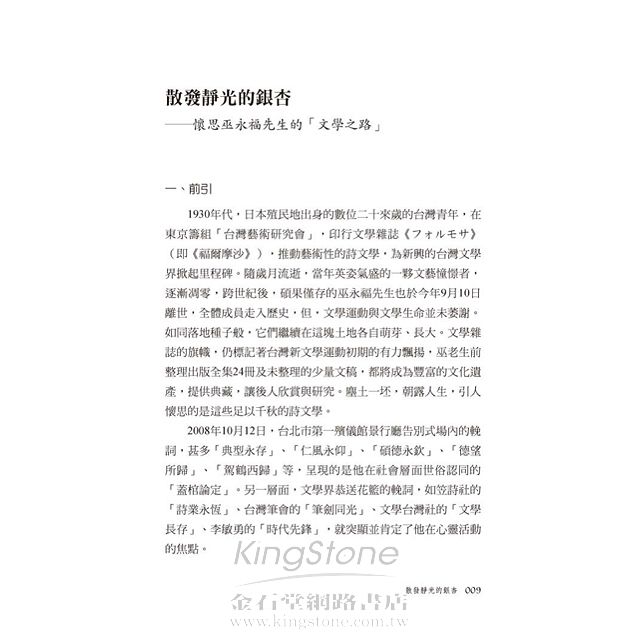 散發靜光的銀杏───懷思巫永福先生的「文學之路」
