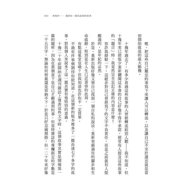 於是,重新出版好像又替自己找到一個自私的說法:重新省視過往的腳步和生命痕跡,特別是在人生已近黃昏的此刻。