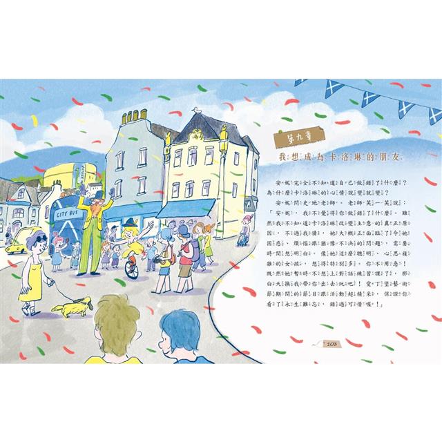 安妮隨著馬戲團參加愛丁堡藝術節,並幫助叛逆少女卡洛琳解開心結,兩人成為莫逆之交。此外,由安妮的視角可看到愛丁堡豐富人文景觀、藝術節特色活動。如此流暢的圖文蘊涵真摯友情、自我成長、異國文化、國際視野。翻開書,一起享受異國風情吧!