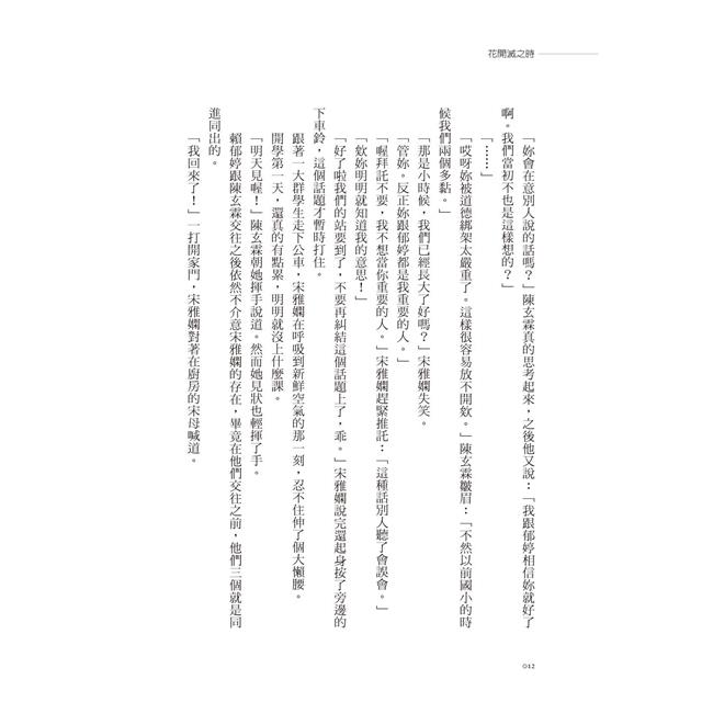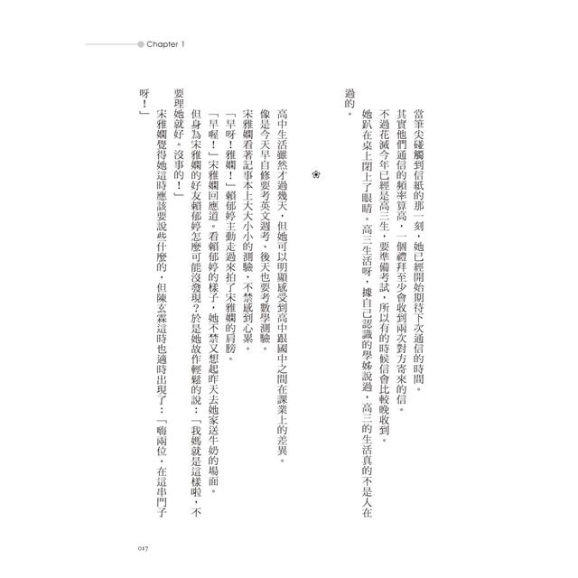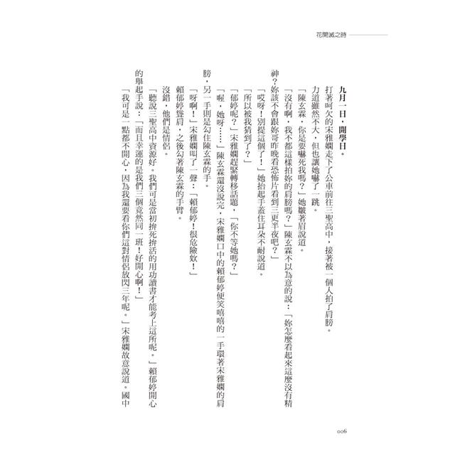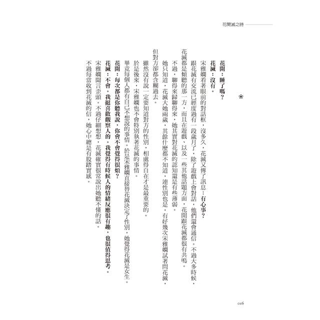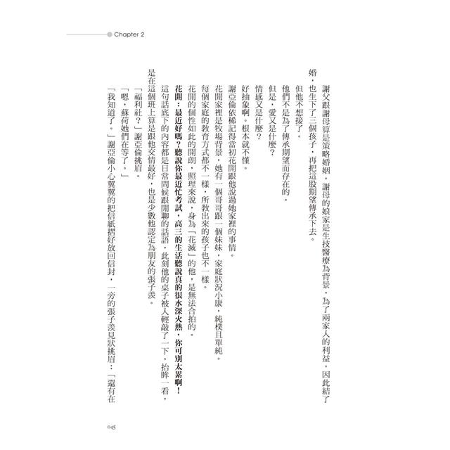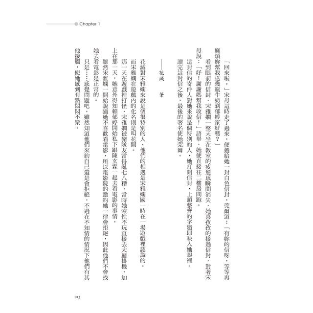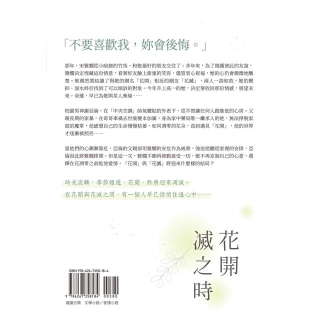 那年,宋雅嫻從小暗戀的竹馬,和她最好的朋友交往了。多年來,為了維護彼此的友誼,雅嫻決定埋藏這份情意,看著好友臉上甜蜜的笑容,儘管衷心祝福,她的心仍會微微地酸楚。她偶然間結識了與她的網名「花開」相近的網友「花滅」,兩人一談如故,她的壓抑、淚水終於找到了可以傾訴的對象。今年升上高一的她,決定要收回那份情感,展望未來。命運,早已為她與某人牽線……
