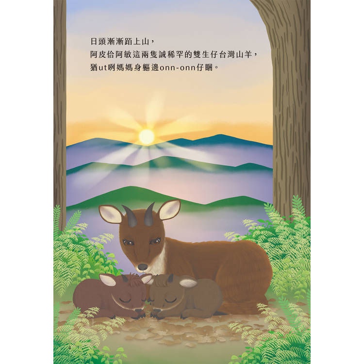雙生仔台灣山羊「阿皮」佮「阿敏」,這工欲對阿母身軀邊畢業、開始新生活矣。阿皮精神百倍足期待,阿敏卻是膽膽厚操煩。兩隻台灣山羊離開媽媽的旅途,會看著啥物款的景緻,拄著啥物款的冒險佮體驗?