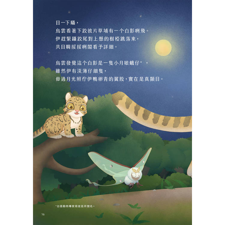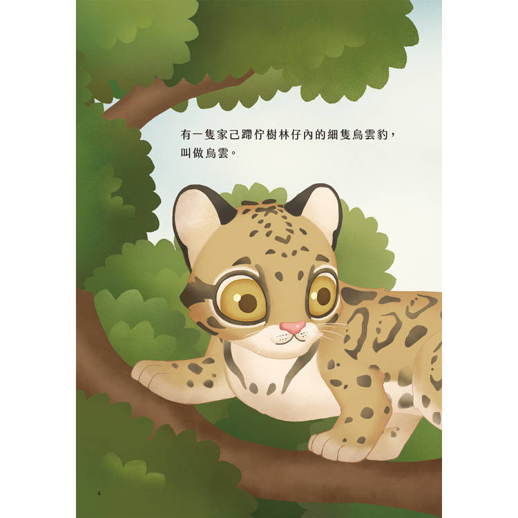 樹林仔內,家己孤身一隻的細隻烏雲豹「烏雲」,定定目箍含目屎,日夜傷心。因為伊揣無家己的親族,已經毋知影家己是啥物。伊學石虎的叫聲、學烏熊食飯,想欲加入對方、揣著友伴,但是攏無法度。有一暝,烏雲拄著一隻好心的小月娘蛾仔,月光下,陪伴伊走揣家己……
