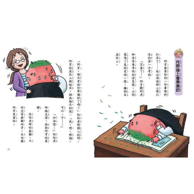 每則故事都沸騰有勁,「笑」果十足,並闡述不同的主題,例如:面對霸凌不懼不怕,勇敢做自己的勇氣;考試作弊得高分,內心的後悔與不安;成功與輸贏的真正價值究竟是什麼……等,為孩子打造好品格。