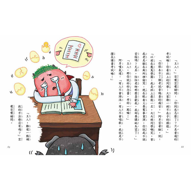 為了成為全世界最有名的魔鬼,阿牙決定反其道而行,專門做好事。可是難題來了,他不知道什麼才算「好事」!為了學習怎麼做好事,阿牙也要上學去啦,和人類的小朋友一起上課、考試、交作業。人類學校的功課怎麼這麼難?數學算不好,造句也寫不出來,阿牙只好施法術作弊。然而拿到一百分後,阿牙卻高興不起來,不但隨時活在同學們懷疑的目光下,身體還臭臭的……