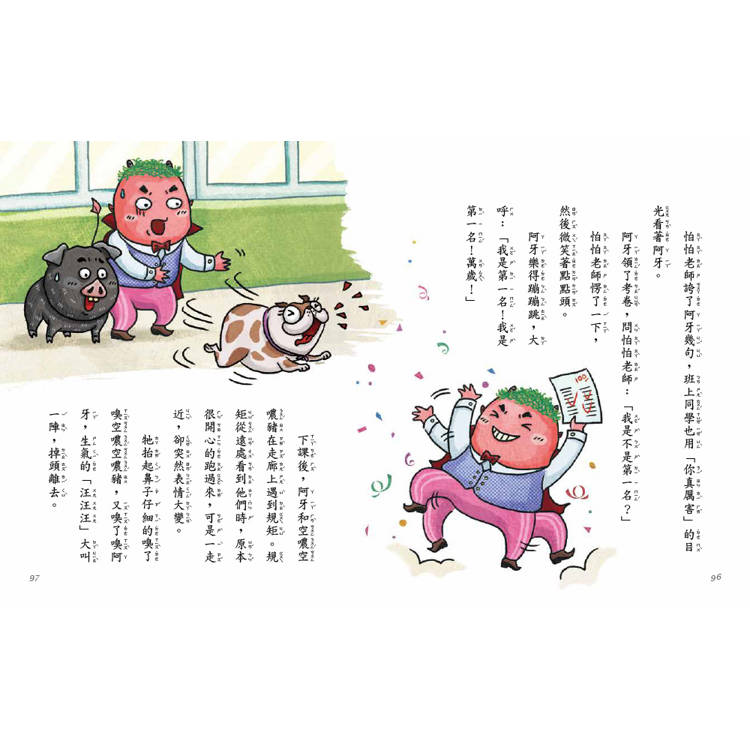 很快的,小魔鬼和空噥空噥豬便成為我筆下世界的主角,他們一起騎馬、玩電腦、吃棒棒糖、打擊壞蛋、參加同學會……逗趣的故事一則一則冒出來。我把故事寫得精采易讀、沸騰有勁,希望孩子能沉浸其中,享受閱讀的樂趣。