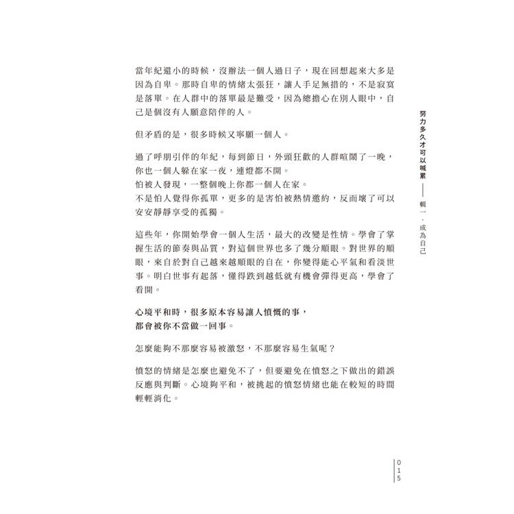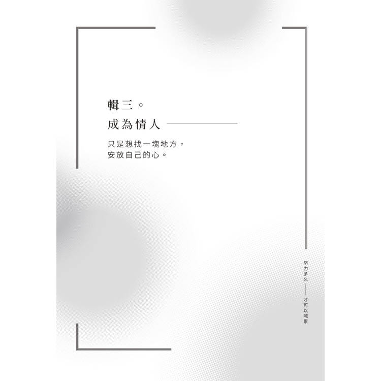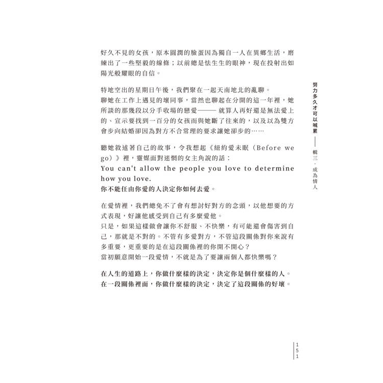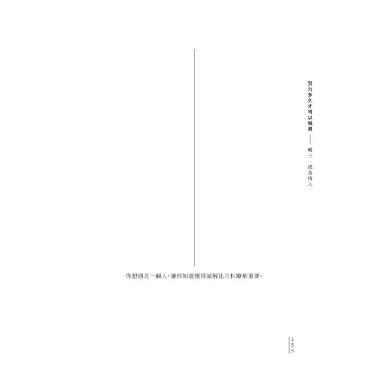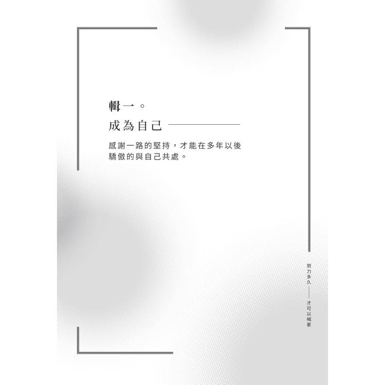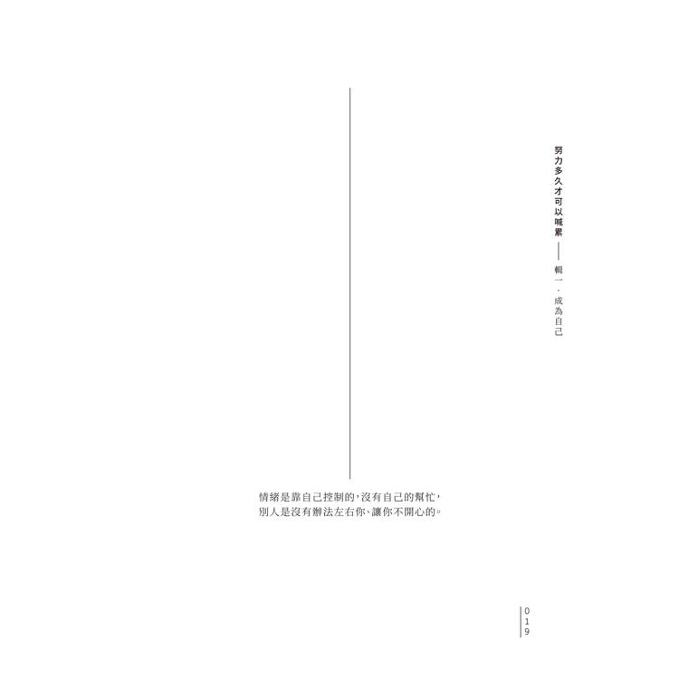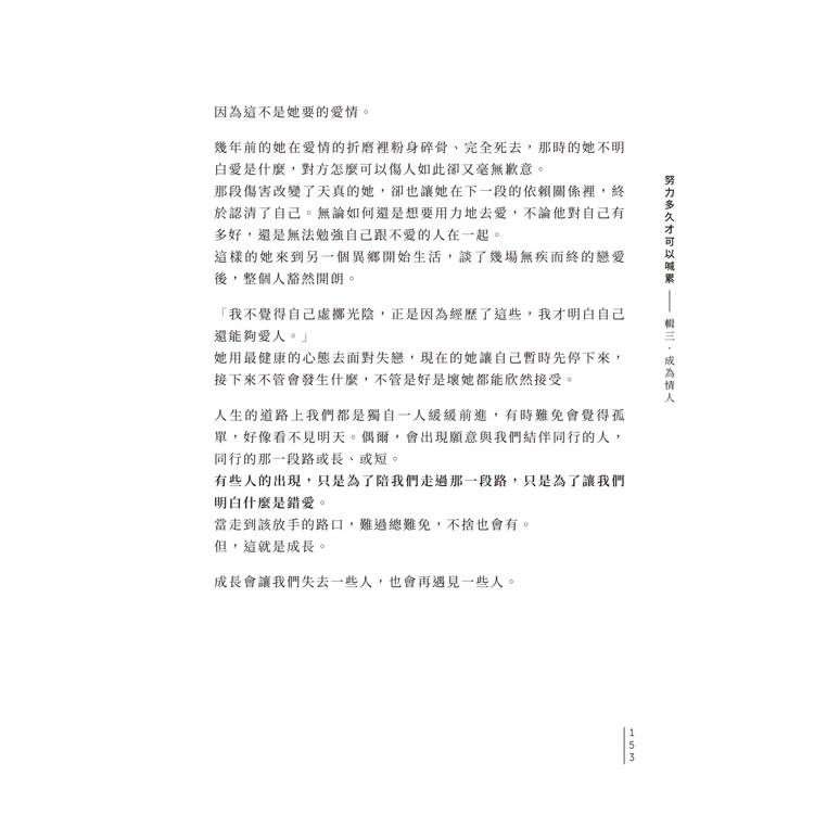 疲憊的時候,你需要的是一杯熱茶及一個好故事,如同艾莉的《努力多久才可以喊累》,讓你感覺不孤單。而你,也能對別人的故事感同身受,那是身而為人最美的情感,也將是找回勇氣的開端。──作家 陳默安
