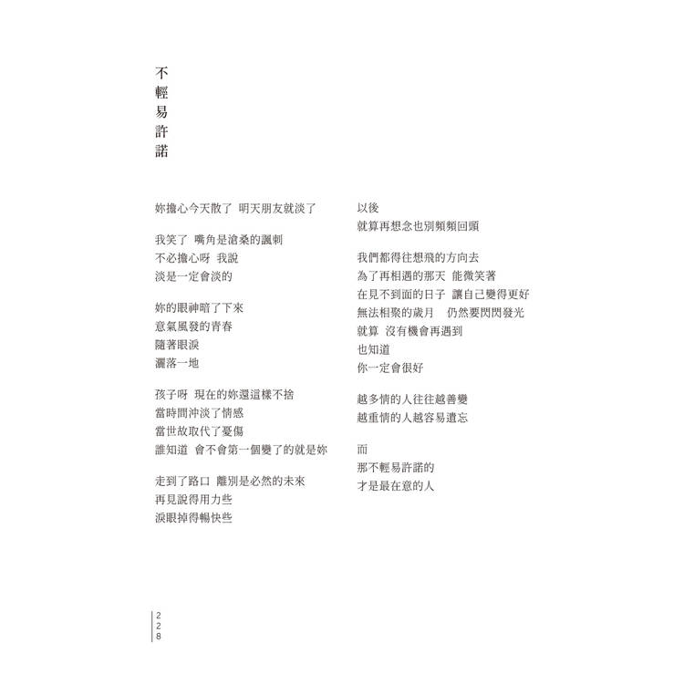 艾莉擅長將我們心中說不出的故事,緩緩以文字記錄下來,沒有過多的加油安慰,只想讓你知道,不用一個人苦苦硬撐,即使過程艱難,你仍是被這世界所愛。