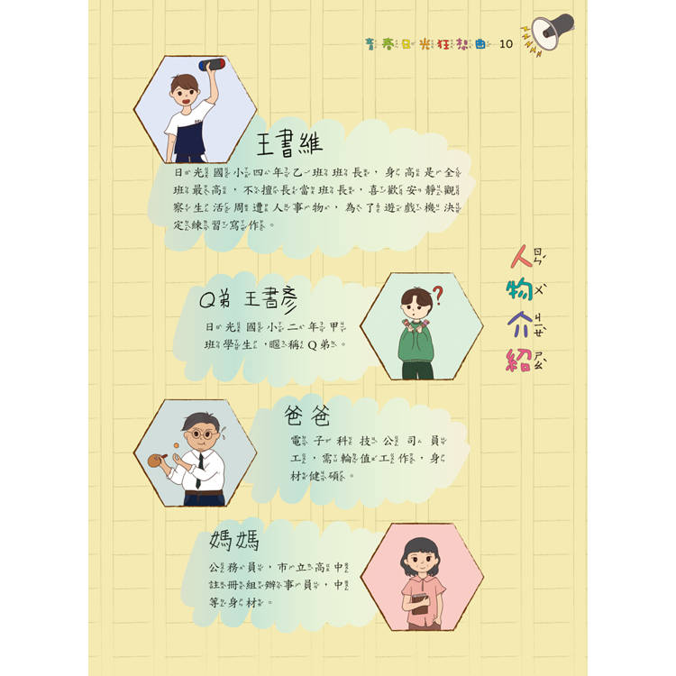 現在,我有機會可以用不同的方式說不同的故事,我以居住的社區環境作為故事發展的舞台,發想出主人翁一家人的互動與日常點滴,並期待大家能融入王書維的成長歲月。