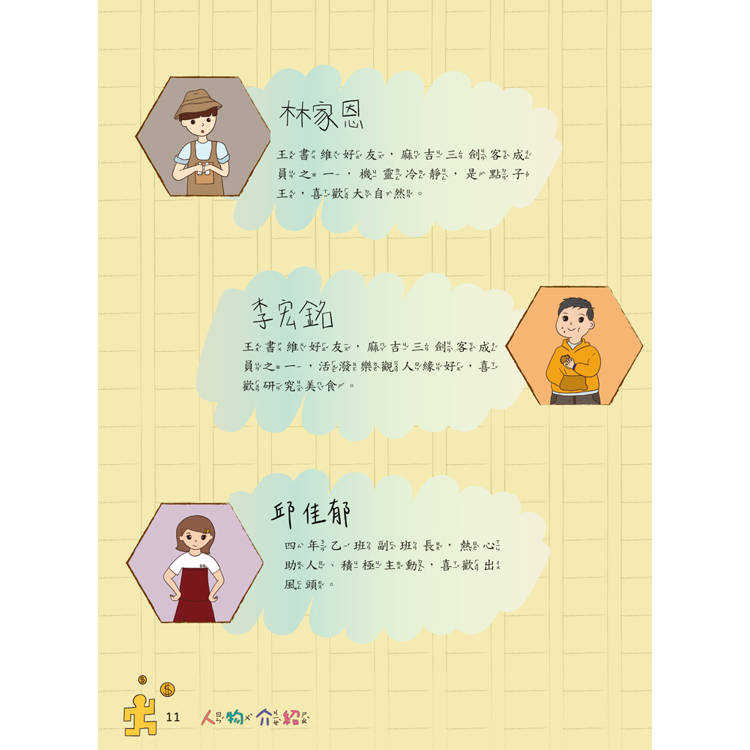 王書維的形象鮮明:他身高最高,卻對班長的職責並不在行;他不擅長表達自己,但擅於靜靜觀察身邊的人事物。這樣一個略帶矛盾的角色特質,使他成為許多讀者能夠共鳴的成長典型。而王書維的兩位好友——充滿點子但總圍繞吃的李宏銘,與樂於幫助朋友的林家恩,為故事增添了更多生動的互動場景,也展現了童年友情的珍貴與純粹。