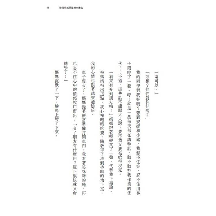 我很慶幸她不再丟出難接的問題,但是不回話也讓我很煎熬。回去教室的路看起來近,但是兩個不說話的人湊在一起,簡直像是要走一輩子……