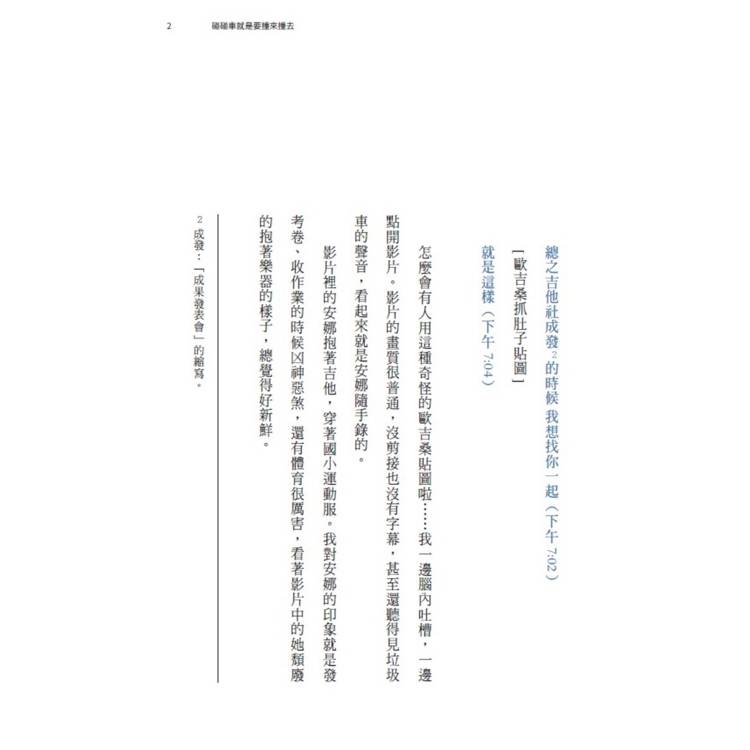 安娜「哼」的一聲,從鼻子發出一聲冷笑沒說話。我承受不住對話中的沉默,馬上又補上一句:「啊哈哈哈,同一隊就是要有厲害的人和很廢的人,這樣比較剛好嘛……」