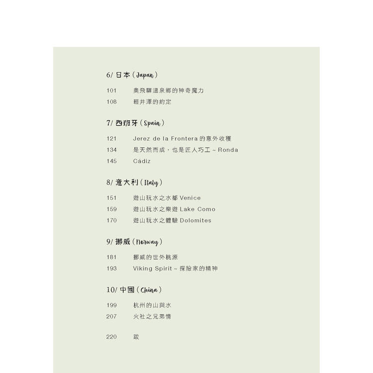 作者走訪10個國家,寫下21篇動人遊記,記錄非主流卻深刻的旅遊地點。