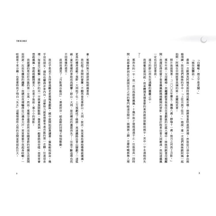 那消失的一半,我一直以為就是佩佩,十幾年後才發現遠遠不止。往後很長一段時間,我都會夢到自己被困在月之河的雙門暗道空間中,兩側被上鎖,怎麼呼喊都無人理會,那樣的無力感深深地刺痛著我。