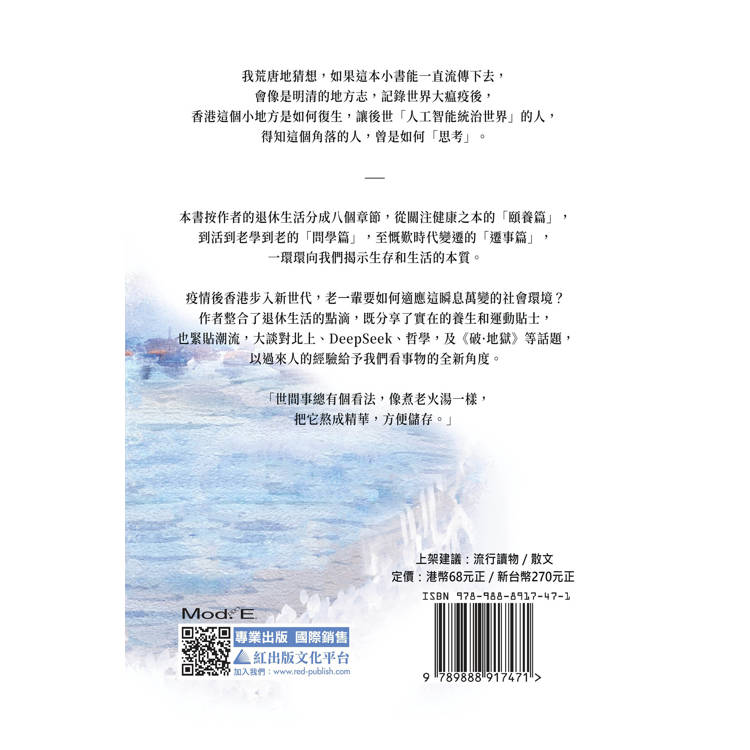 ‧作者整合了退休生活的點滴,既分享了實在的養生和運動貼士,也緊貼潮流,大談對北上、DeepSeek、哲學,及《破·地獄》等話題。