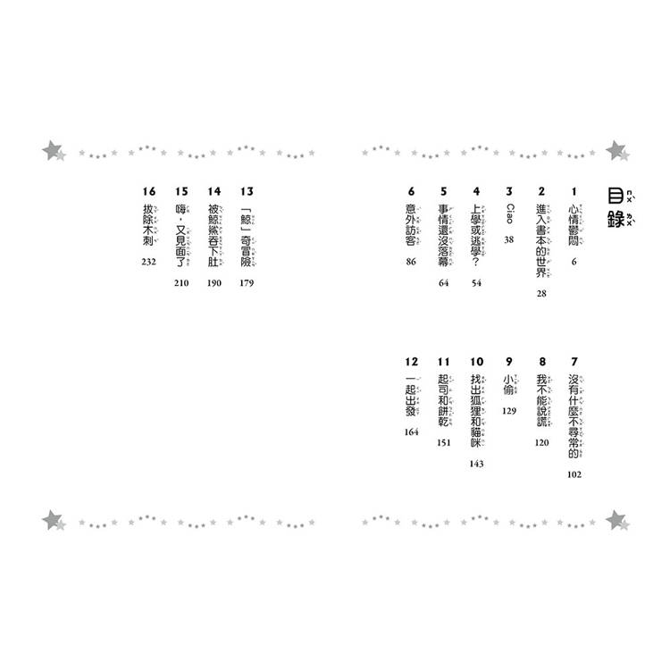 這系列雖然每本都是獨立的故事,但因為第一集會交代事情的緣由,所以建議先從第一集開始看。有注音,文字量頗多,跟《童話夢工場》系列很大的不一樣是這系列幾乎沒有插圖,所以適合高年級生,或已經可以閱讀中篇小說的中年級生。」
