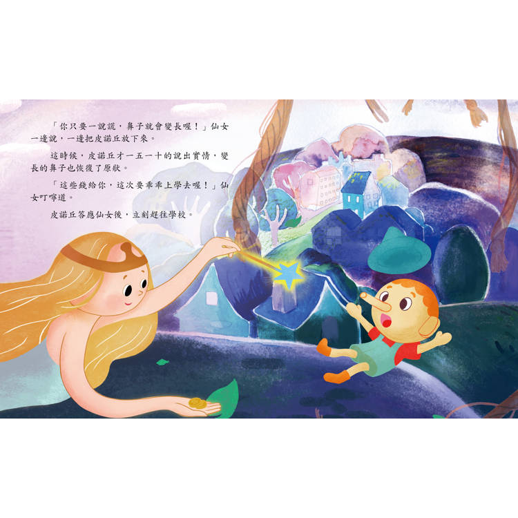 但是皮諾丘在上學的途中,遇到了好多新鮮有趣的事情,一不小心就把「乖乖去上學」這個承諾忘得一乾二淨,還對來救他的仙女說謊,究竟會發生什麼可怕的事呢?