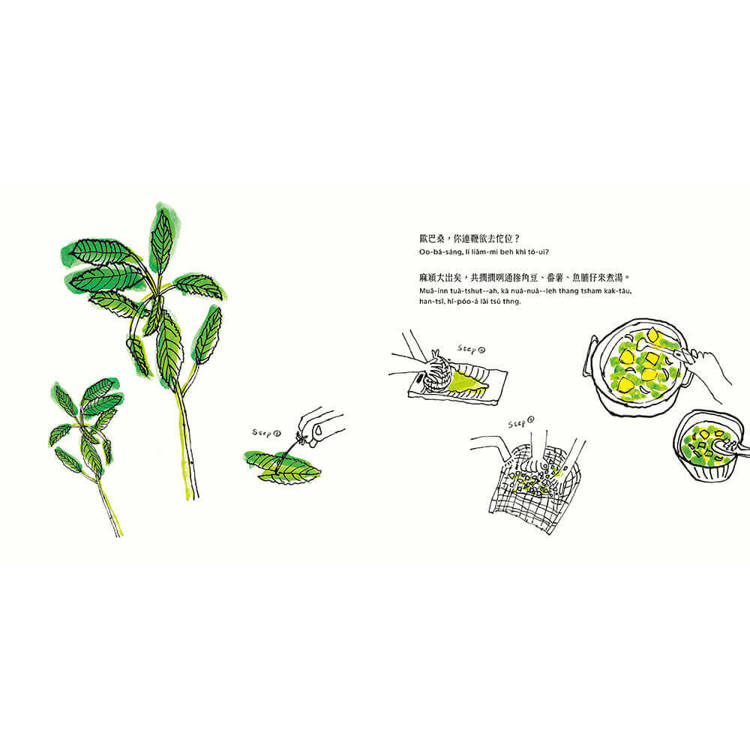 本書的台文為漢羅與羅馬拼音並陳,扣合不同母語閱讀需求,且置入了對應華語「現在」「等一下」「接下來」的不同台語用詞,令讀者在其中感受語言音韻的意趣、台語詞彙的豐富度和之間的細微差異。