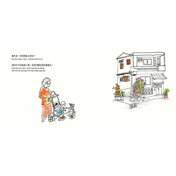 第48屆金鼎獎得主陳芊榕人生問路新作,運用線條與色塊的錯位疊合,描繪富有老派文化魅力的台灣歐巴桑群像和台灣街景。台文漢羅與羅馬拼音並陳,展現母語詞彙的韻味和層次。透過簡單的對話文本,探索你我由少到老的大哉問:未來要去哪裡?適合熟齡閱讀、親子共享的生命教育;在日常風景裡直視分離課題,討論死亡與當下。