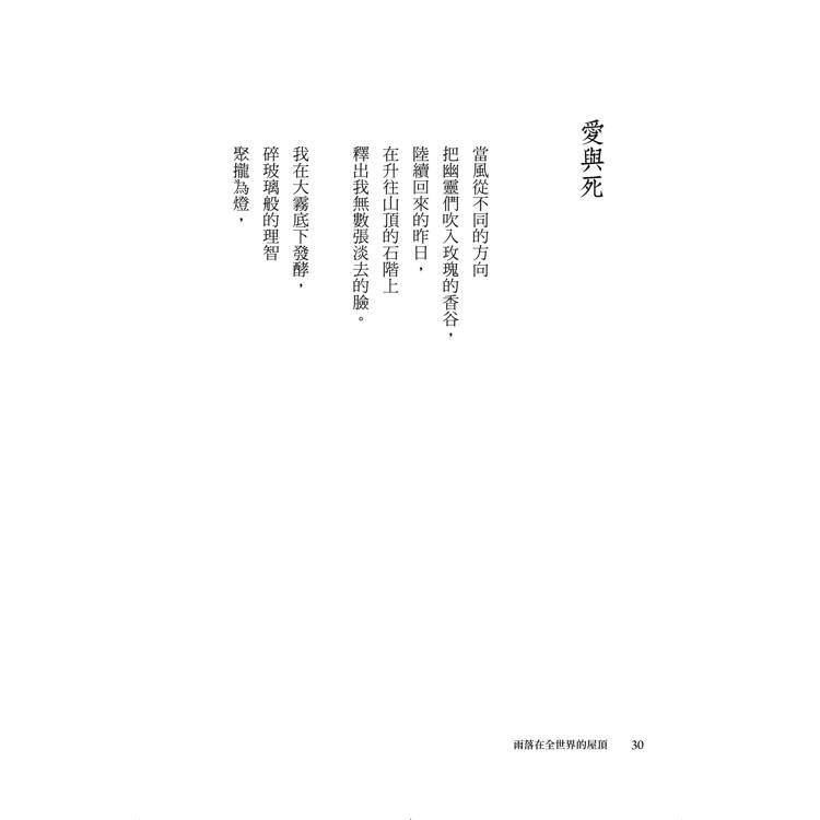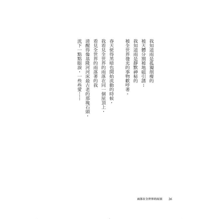 「《雨落在全世界的屋頂》內蘊浪漫精神,仰望崇高的事物,在流轉遞嬗中提煉永恆。」──楊佳嫻(詩人)