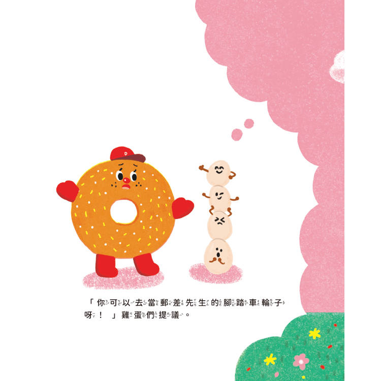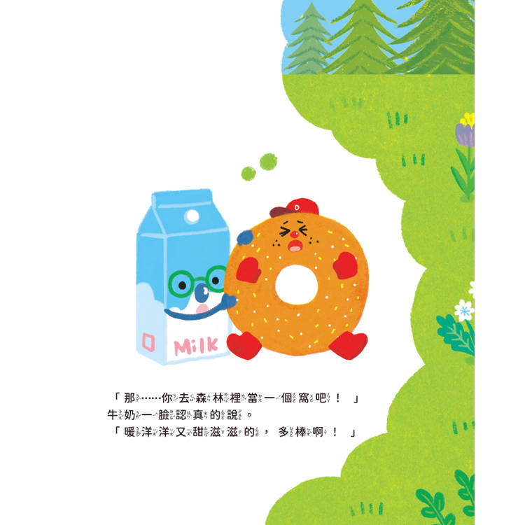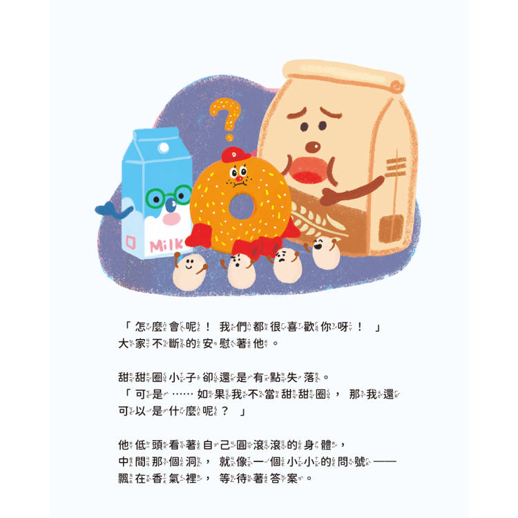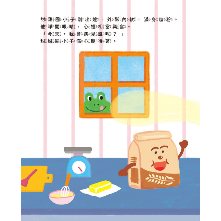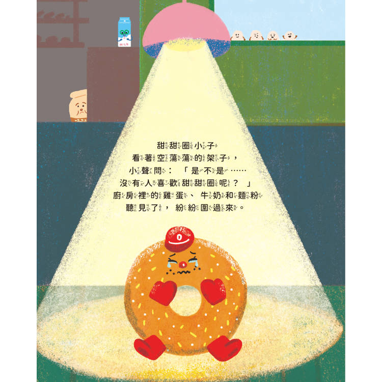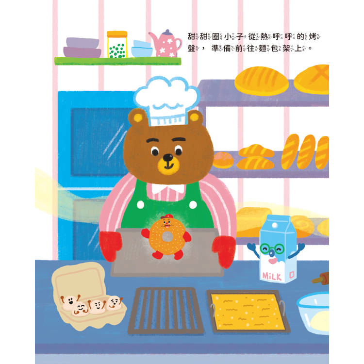 雞蛋、牛奶與麵粉一路陪伴甜甜圈小子,時而吵鬧、時而鼓勵,陪孩子一起感受友情帶來的勇氣與歡笑。