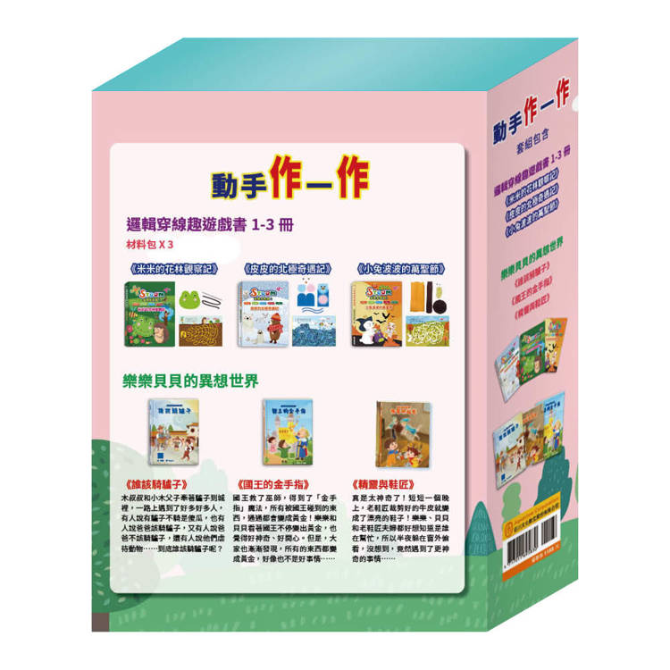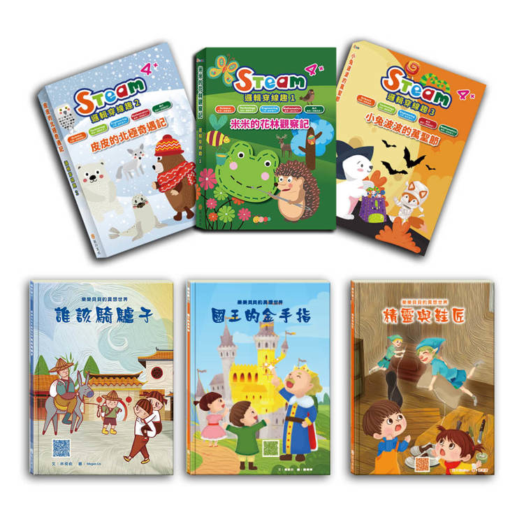 動手作一作 套組(【STEAM《米米的花林觀察季+皮皮的北極奇遇記+小兔波波的萬聖節》故事遊戲書】+【樂樂貝貝的異想世界:誰該騎驢子+國王的金手指+精靈與鞋匠】)
