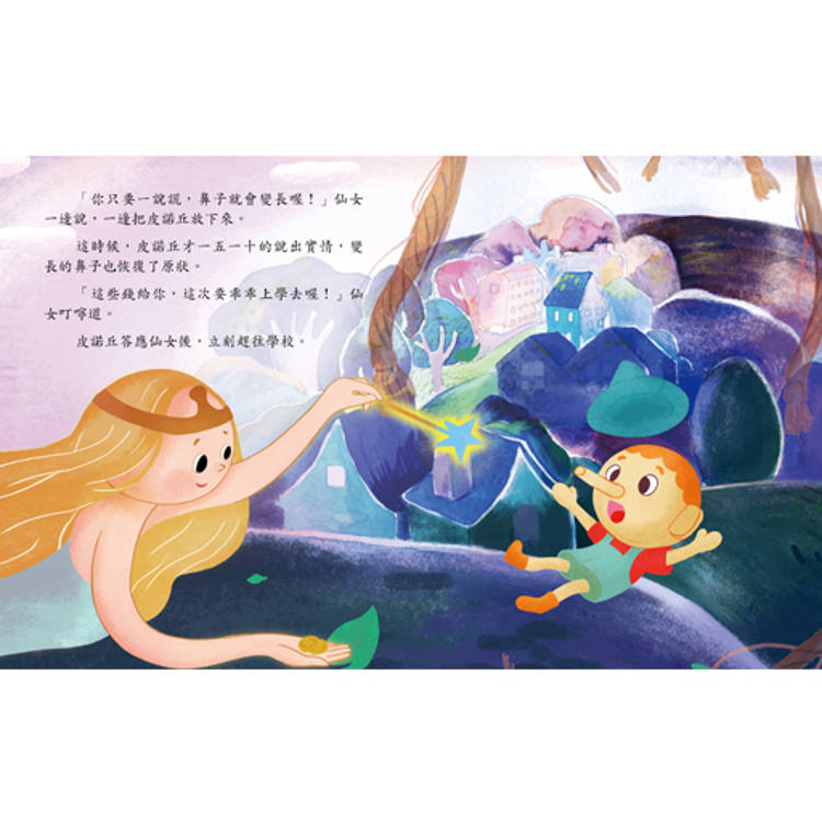 但是皮諾丘在上學的途中,遇到了好多新鮮有趣的事情,一不小心就把「乖乖去上學」這個承諾忘得一乾二淨,還對來救他的仙女說謊,究竟會發生什麼可怕的事呢?