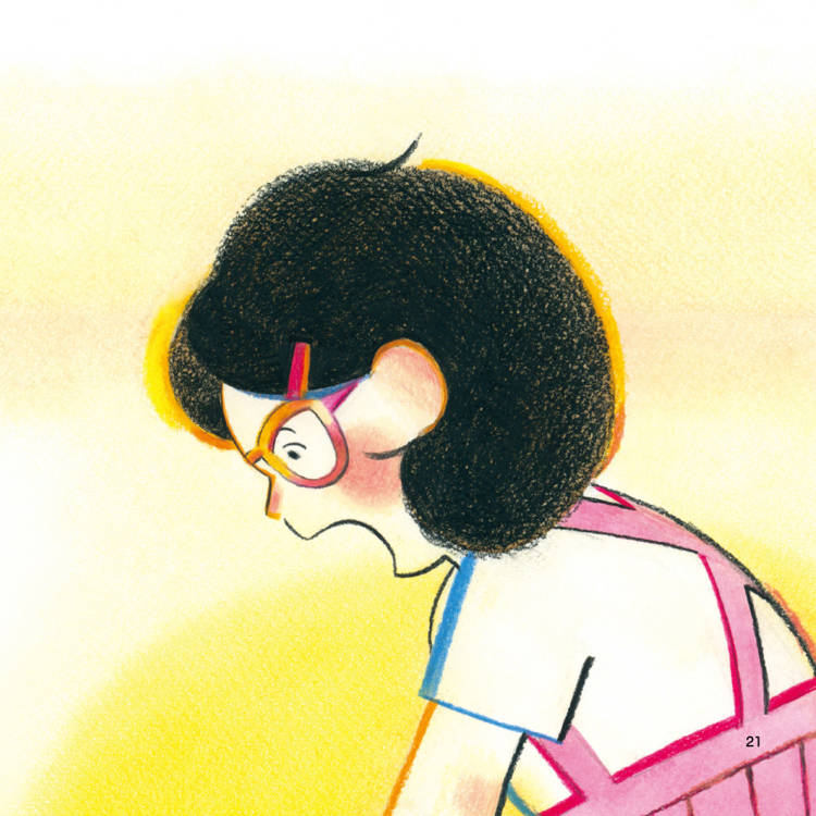 美妙的是,此作將小女主角雯雯面對健康檢查所產生「例行的焦慮和害怕」,不經心穿了不成雙的襪子去校,反倒令同學們好奇,迸發出歡樂的笑聲,一個不經心竟反轉了故事,一雙不對稱的襪子不但掀起驚喜,還激盪出孩子們的想像力及創造力。就連雯雯穿著的不成雙的襪子們也歡喜得很!筆者就十分欣賞頁24至25圖中兩隻襪子的神情,很是逗趣,以及頁25這段文字故事書寫,亦極具童趣: