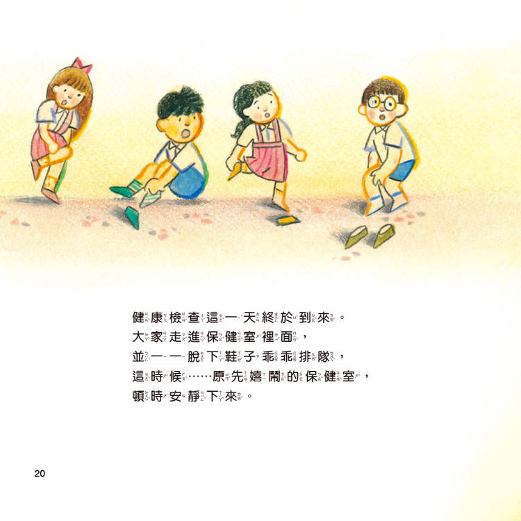 這真是一部深具意義又美妙的繪本!珍貴之處在於作者與繪者能夠用心體察兒童經驗,並別具慧眼地挑選了一個真實學童們會需要面對的真實體驗──學校例行的健康檢查,一個鮮少被重視的主題。