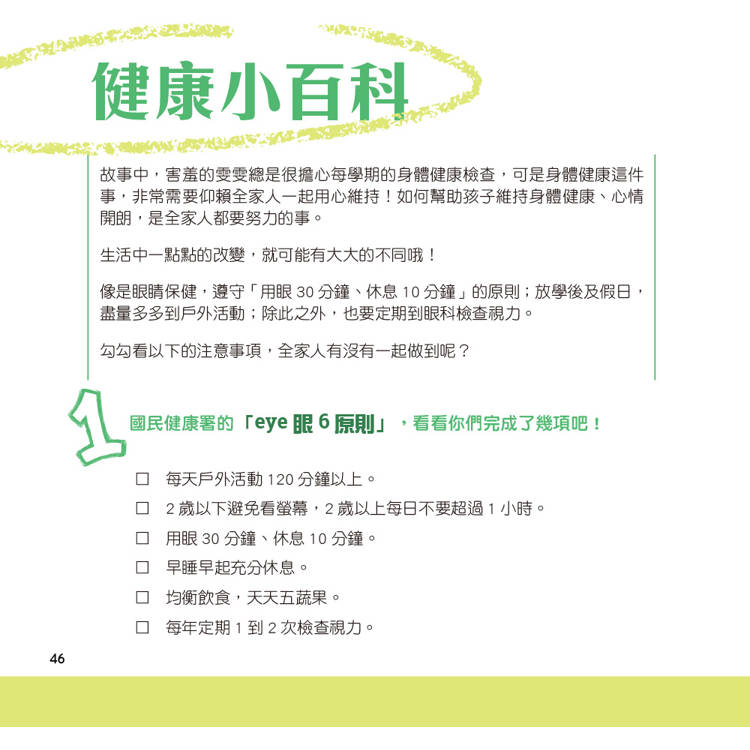 ★內有練習題「健康小百科」,讓家長帶孩子更認識健康的身體!