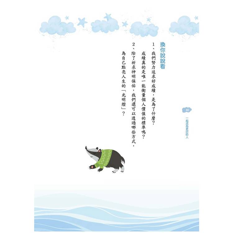 你將會發現,原來每個人看故事的角度都不一樣:透過交流,我們可以聽到更多不同的聲音,這讓我們的想法更開闊、更豐富。就讓我們帶著好奇心和勇氣,去探索這個世界吧!當我們更認識自己、更理解他人,也就會更有力量、更有智慧,去面對生活中的各種挑戰,最終成為一個更好的自己!