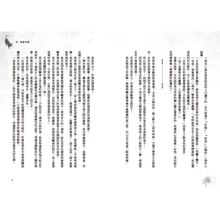 本書以各種中短篇連綴而成,有別於以往驚悚懸疑類型的小說,