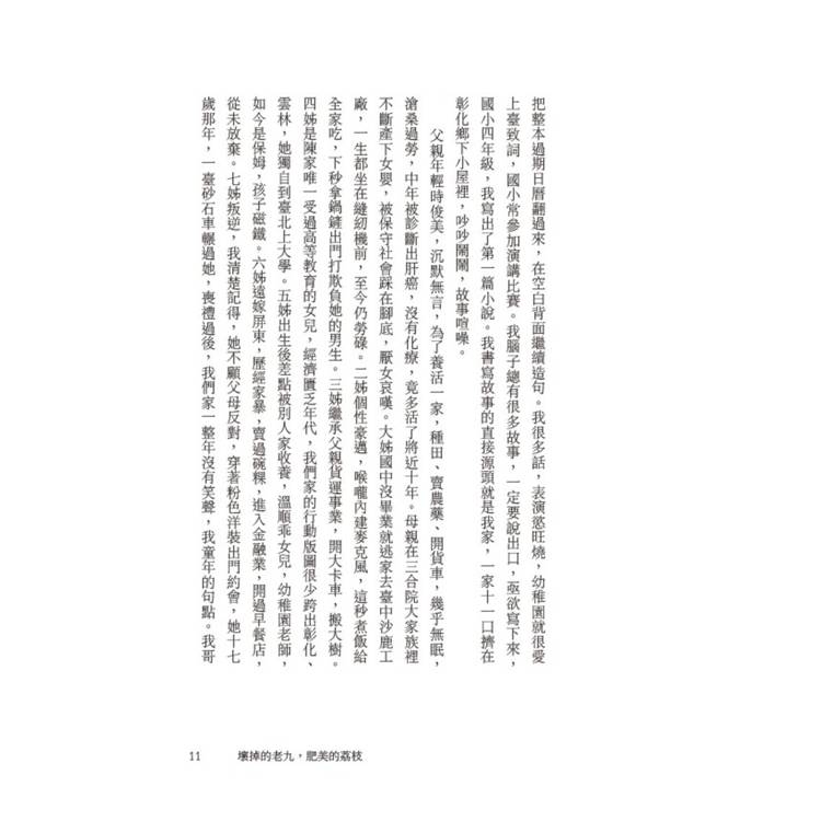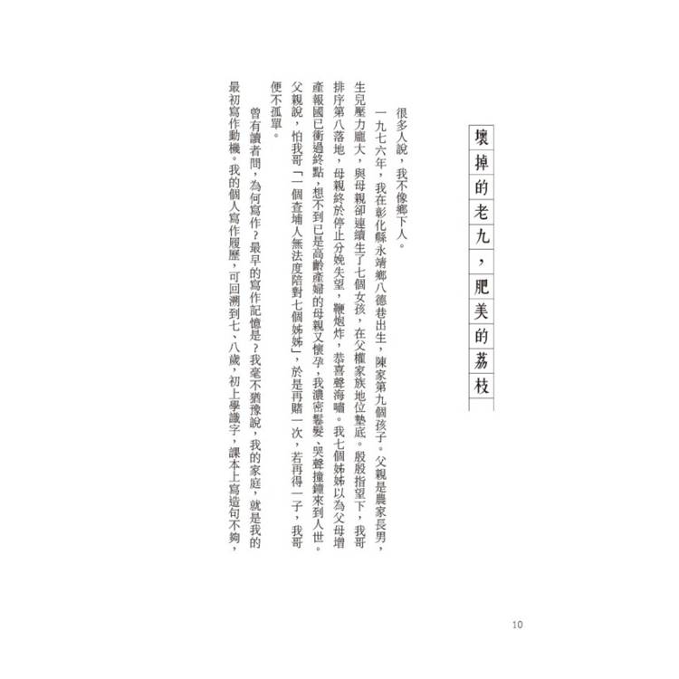★ 書寫個人的身體成長,寫家族往事、婚禮喪禮、性向啟蒙、鄉野封閉。攤開身體的履歷,揭露傷口。