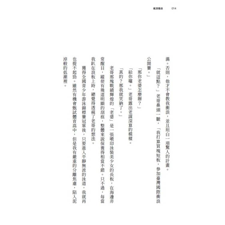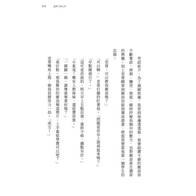 故事結構精巧、自然流暢,以臺灣東岸壯麗海景為背景,將衝浪知識巧妙融入敘事,深入淺出、引人入勝。這是一段關於夢想、勇氣與自我探索的熱血青春旅程,也揭開兒少運動小說的另一種風貌。