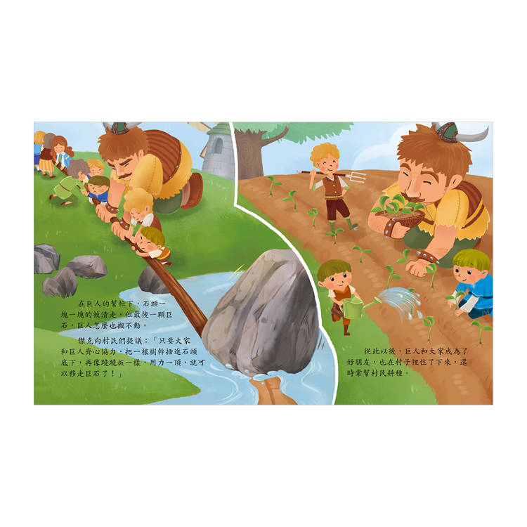 傑克順著神奇的豆藤蔓一路爬呀爬,竟然爬到了巨人的城堡裡,還在那裡發現了許多原本屬於村民的寶物,於是下定決心要將這些東西還給大家!