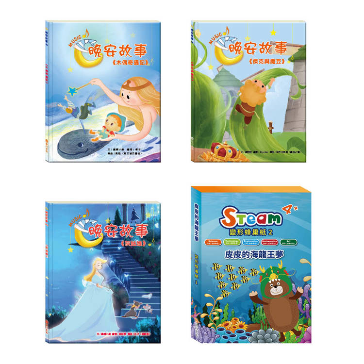 閱讀與動手作2 套書(【STEAM《皮皮的海龍王夢》故事遊戲書】+【晚安故事:木偶奇遇記+傑克與魔豆+傑克與魔豆】)