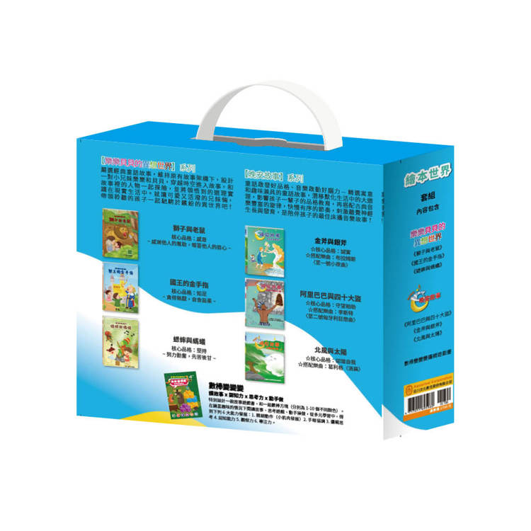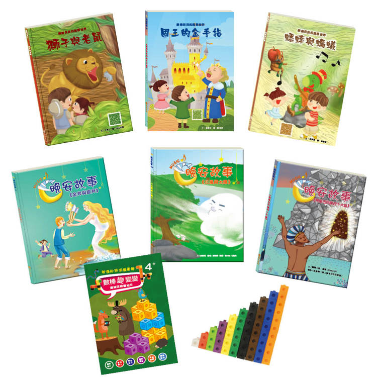 繪本世界 套組(獅子與老鼠+國王的金手指+蟋蟀與螞蟻+金斧與銀斧+北風與太陽 +阿里巴巴與四十大盜+數棒變變變邏輯遊戲書)