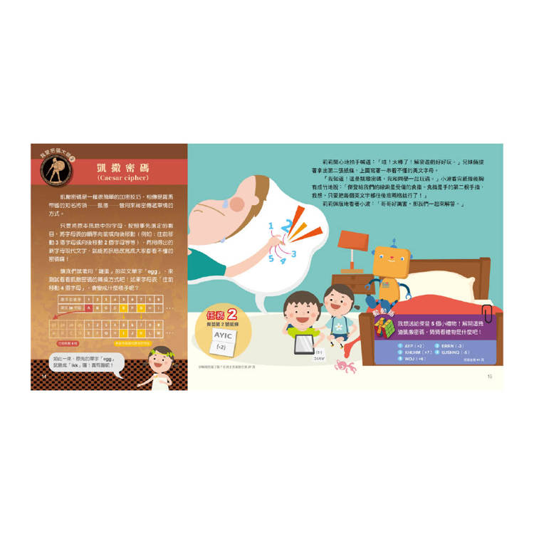 以生動有趣的故事,教導生活中常見的暗號與訊息傳遞的演變,讓孩子成為密碼世界中的解密高手。內有25組密碼題、5款解密法及5種程式設計,快來購買!!