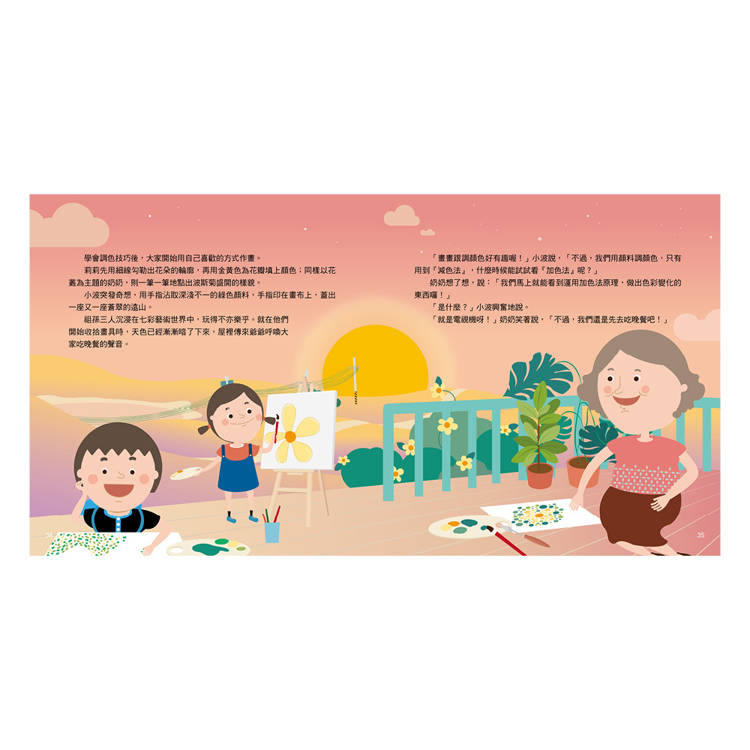 莉莉開心地喊著:「爺爺快看!彩虹有七種顏色,好美啊!」