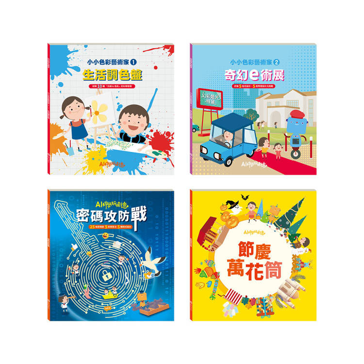 科學與動手作2 套組(【AI科學玩創意《密碼攻防戰+節慶萬花筒+生活調色盤+奇幻e術展》】+【TOGO《一起去上學+一起來運動+一起扮家家酒》益智磁鐵遊戲書】