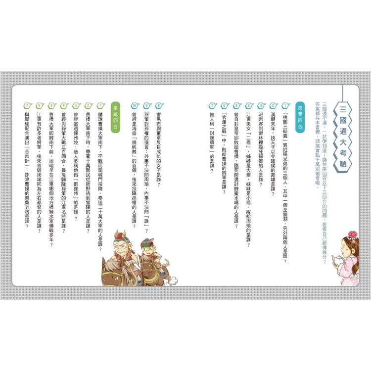 ★特色2.了解中國經典最佳入門書:改編自中國四大名著之一《三國演義》,小學生到青少年必讀經典故事。以「人物」為各書主軸,以「現代語言」述說人物故事,藉「事件」展露主角的個性特質;看三國人物如何在歷史舞台上呼風喚雨、以武力智力拚鬥,藉此激發小讀者對歷史故事的思考,發展出探討歷史真實的能力。