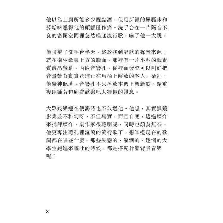 也不知道是在幾歲開始,憧憬的愛情已經從少年少女漫畫的夢幻氛圍,轉成在咖啡因與酒精的苦澀中的細膩口感。艾琪的短篇小說有著對角色的冷冽而精準的觀察側寫,卻也有最核心的體溫。本書可以說是冷硬派的都會愛情故事,配樂是流行爵士,再搭配一點懷舊濾鏡。 ──敘事鋸主編許立衡