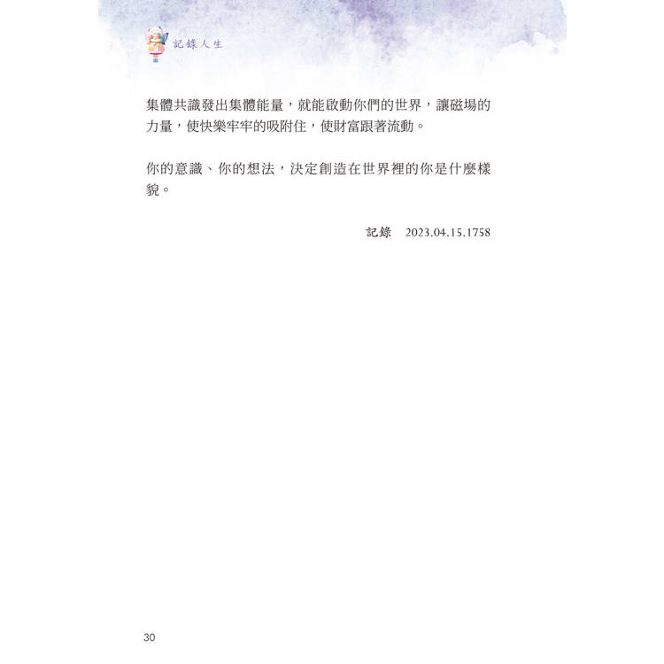 其實做人不要想太多,那麼心情就不會悵然若失。日夜羨慕嫉妒恨,被恐懼或憤怒所左右,每個人都該使用正面意識,創造出屬於自己的世界。在世界裡找出自己的同伴,集體共識發出集體能量,就能啟動你們的世界,讓磁場的力量,使快樂牢牢的吸附住,使財富跟著流動。