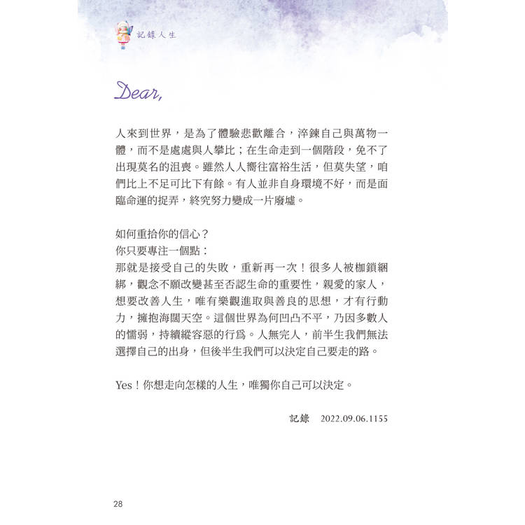 以上內容節錄自《記錄人生》江米耶◎著;柳橙子◎繪.白象文化出版