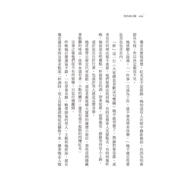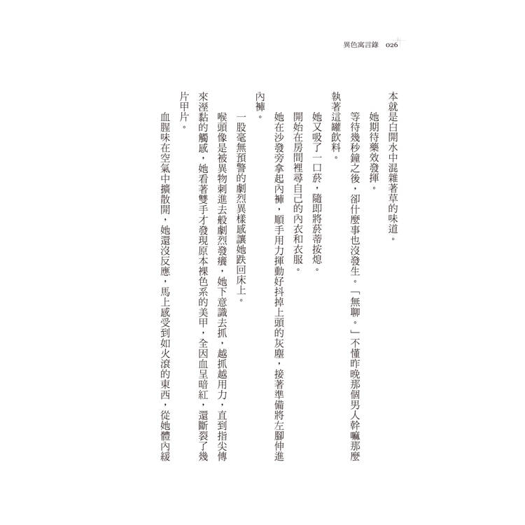 非常感謝秀威出版社願意相信我的作品。從初次閱讀到定稿的過程中,芮瑜編輯讓我感受到合作的愉快,也讓我在創作的路上不再孤單──因此才會有現在這本《異色寓言錄》。