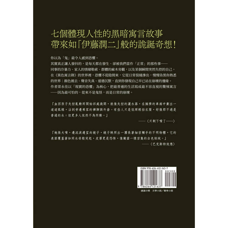 一部從「日常恐懼」出發的黑色寓言集──金鼎獎入圍作家🏆梁永佳,將生活中的疲憊與崩壞,轉化為令人心驚的異色景象!