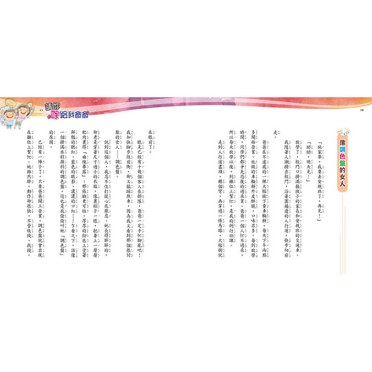 眼見已經有十幾個客人在排隊,爸爸一定手忙腳亂吧!我加快腳步往前衝,卻又猛踩煞車,因為我又看到那個很討厭的女人—調色盤。