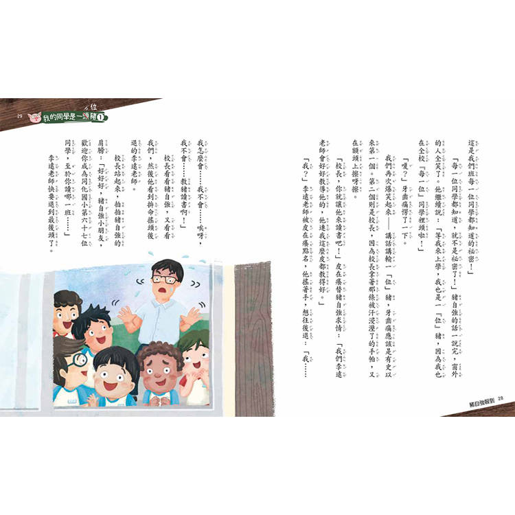 「每一位同學都知道,就不是祕密了!」豬自強的話一說完,窗外的人全笑了。他繼續說:「等我來上學,我也是一『位』豬,因為我也在全校『每一位』同學裡頭啦!」